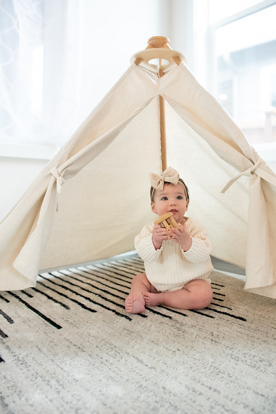 - Organic Cotton Linen Tent (6+ months to toddler) – As your baby becomes more mobile, transform the play gym into a cozy, enclosed space that supports independent play, early crawling exploration, and later imaginative play and quiet reading time.